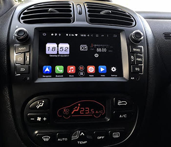 صفحه نمایش کاملا لمسی و تاچ قابلیت پخش موزیک و فیلم و تصاویر و ... اکولایزر و تنظیم صدا حرفه ای برای سیستم صوتی سنگین و غول بدون هیچ مشکلی 6 خروجی صدا برای آمپلی فایر و سابووفر دارای ورودی دوربین دنده عقب و دوربین جلو نور پس زمینه دکمه ها به هر رنگی که بخواهید میتونید تغییر بدید قابلیت نصب تلویزیون دیجیتال نصب دو عدد نمایشگر پشت سری صندلی دارای بلوتوث و تماس از طریق مولتی مدیا ، مخاطبین در قسمت مخصوص مولتی مدیا از گوشی اتوماتیک منتقل میشه که میتونید شماره گیری هم کنید و تماس بگیرید بلوتوث برای پخش اهنگ های گوشی روی خودرو دارای جی پی اس و رهیاب افلاین سخنگو تارگت که خیلی عالیه و قابل اپدیت دارای اینترفیس برای فعال کردن کنترل ضبط زیر فرمان برای مدل های فرانسه محل نصب دو عدد فلش ورودی و خروجی های کامل و فول دارای کامپیوتر سفری برای مدل های فرانسه با قابلیت نمایش مصرف سوخت میانگین ، دمای بیرون ، نمایش باز بودن درب ها هر دربی جداگانه و بصورت کاملا گرافیکی و زیبا ( قابلیت های نمایشگر تایپ بی رو کامل داره ) سیستم عامل ویندوز هست که مدل 2017 هست این مولتی مدیا و هیچ وقت هنگ نمیکنه طبق تصاویر سعی کردم از تمام امکاناتش عکس بزارم . توضیحاتی که لازم بود دادم و تنها مواردی که تو تصاویر است ارسال میشه و غیر از تصاویر چیز دیگه ای برای ارسال نیست طبق چیزی که دیدید مانیتور تمیز و سالم است ، هیچ مشکلی هم نداره و همه چیز فعال است ، فقط این مدل ها سی دی ، و دی وی دی ساپورت نمیکنند تمام قسمت های مولتی مدیا سالمه نکته ای که باید ذکر بشه سوکت انتن جی پی اس هست که به دلیل شکستگی تعویض شده و هیچ مشکلی نداره غیر ازون به هیچ وجه تعمیری نیست فقط سوکت انتن جی پی اس تعویض شده و بصورت کلی 8 ماه کارکرده مدل MVH-206 PEUG از پخشکنندههای 2دین شرکت «اتومکسکو» (Automaxco) است. دارای صفحه نمایش 6.2اینچی (متناسب با داشبورد 206) و امکانات کاربردی و کاملی است. صفحه نمایش این پخش کننده از نوع لمسی است و این مسئله کار کردن با دستگاه را برای کاربر ساده کرده است. مدل MVH-206 PEUG روشهای اتصال مختلفی از جمله پورت USB، بلوتوث و کارت sd دارد و این نکته آزادی عمل زیادی در اختیار کاربر قرار میدهد. البته نکته مهم در مورد این دستگاه پخش سیستم موقعیت یاب GPS آن است که میتواند در مسیریابی کمک بزرگی برای راننده باشد. همچنین کاربر میتواند از طریق بلوتوث گوشی موبایل خود را به دستگاه پخش متصل کرده و از طریق میکروفون دستگاه و اسپیکر خودرو مکالمه کند تا نیازی به در دست گرفتن گوشی نداشته باشد. این مدل 4 × 50 وات صدا تولید میکند که میزان مطلوبی محسوب میشود. درگاه USB دستگاه که بصورت مخفی در قسمت داشبورد قرار میگرد، شما را قادر میسازد که محتوای موردعلاقهی خود را با اتصال فلشمموری گوش دهید؛ اما این تنها راه برای شنیدن موسیقی دلخواهتان نیست؛ شما میتوانید با اتصال کابل AUX تلفن همراهتان را به دستگاه متصل کنید و هر آهنگی را که میخواهید به کمک آن بشنوید. این دستگاه بهجز رادیو میتواند فرمتهای MP3, WMA و AAC را پخش کند. شما امکان این را دارید که تلفن هوشمندتان را به دستگاه متصل کنید و سپس هر کاری که دلتان میخواهد با آن انجام دهید؛ جستجو در میان فایلها، تکرار موسیقی و پخش تصادفی آهنگ ازجملهی این کارهاست. از ویژگیهای این دستگاه میتوان به اکولایزر 3 باندی و قابلیت دریافت رادیو اشاره کرد. درمجموع این پخشکننده قادر است نیاز تمامی کاربرانش را برآورده کند. مدل : MVH-206 PEUG ورژن جدید قابل نصب بر روی تمامی تیپ ها و مدل های پژو 206 دارای صفحه لمسی 6.2 اینچ 4:3,16:9TFT high definition LCD Pixel: 800*480 (مشاهده تصاویر و لغات به همان کیفیتی است که در کامپیوتر میبینید) دارای بلوتوث جهت مکالمه تلفنی و پخش موزیکهای موبایل سوکت فابریک ورودی USB & SD ، ورودی دوربین عقب , ورودی AV رادیو AM , FM مجهز به سیستم رهیاب ماهواره ای به صورت لمسی (GPS فعال) استفاده از نویگیشن هنگام پخش موزیک به صورت همزمان GPS dual zone function 3RCA PreOut (خروجی ساب ووفر) اکولایزر حرفه ای قابلیت